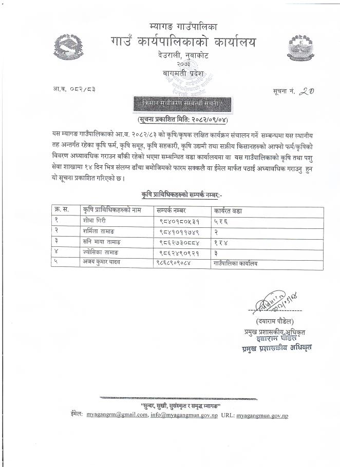 कृषि तथा पशु सम्बन्धी तथ्याङ्क उपलब्ध गराईदिने सम्बन्धी सूचना !