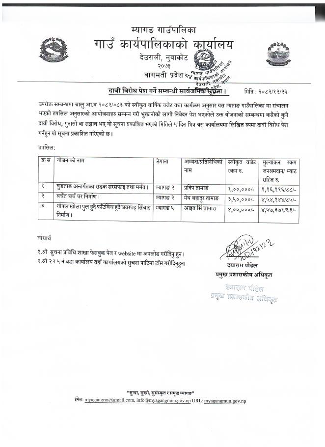 दावी विरोध पेश गर्ने सम्बन्धी सार्वजनिक सूचना 2082-12-23