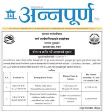 बोलपत्र छनौट गर्ने सम्बन्धी आशयको सूचना !