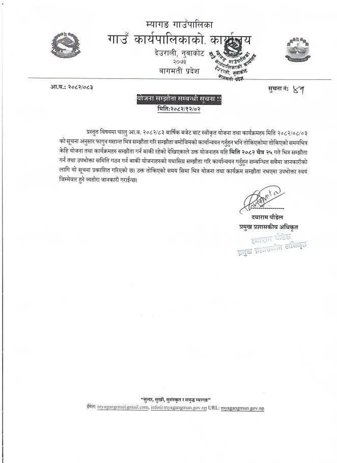 योजना सम्झौता सम्बन्धी सूचना !