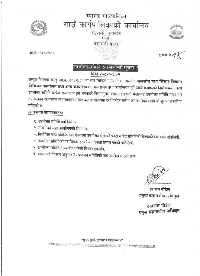 पारादुङ खानेपानी मुहान दर्ता सम्बन्धी सुचना !