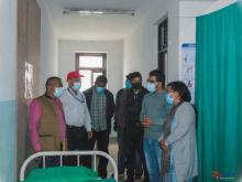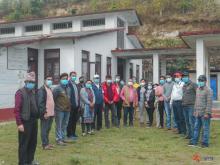 म्यागङ गा.पा. अध्यक्ष श्री आशा तामाङ, उपाध्यक्ष श्री शान्ति लामा गुरुङ, देउराली प्र.स्वा. केन्द्र व्यवस्थापन समितिका अध्यक्ष वडा नं ३ का वडा अध्यक्ष श्री हरि बहादुर तामाङ, वडा नं. २ का वडा अध्यक्ष श्री रुप बहादुर तामाङ लागायत स्वास्थ्यकर्मी, गा.पा. कर्मचारी तथा अन्य पदाधिकारीद्धारा यसै म्यागङ गा.पा. वडा नं. ३ स्थित श्री देउराली प्राथामिक स्वास्थ्य केन्द्रमा कोभिड १९ को नियन्त्रण तथा व्यवस्थापनको लागि तयार परिएको ८ वेड सहितको आईसोलेसन सेन्टरको अवलोकन, निरिक्षण गरिँदै।