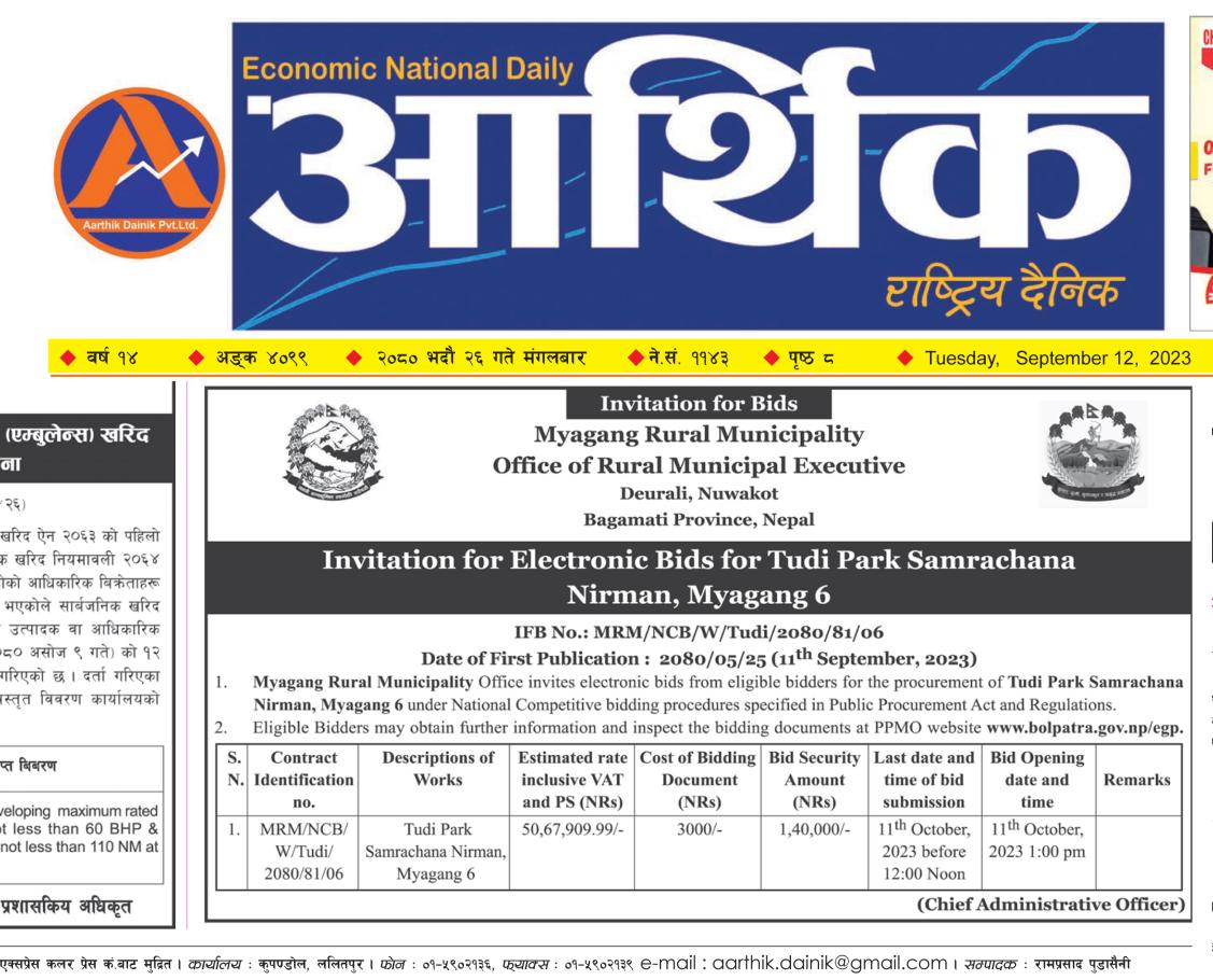 Invitation for Electronic Bids for Tudi Park Samrachana Nirman, Myagang 6
