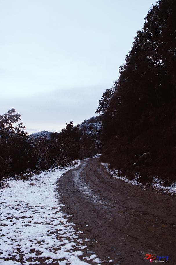 माघ २४ गतेका दिन म्यागङ गाउँ, डाँडामा परेका हिउँका दृश्य।